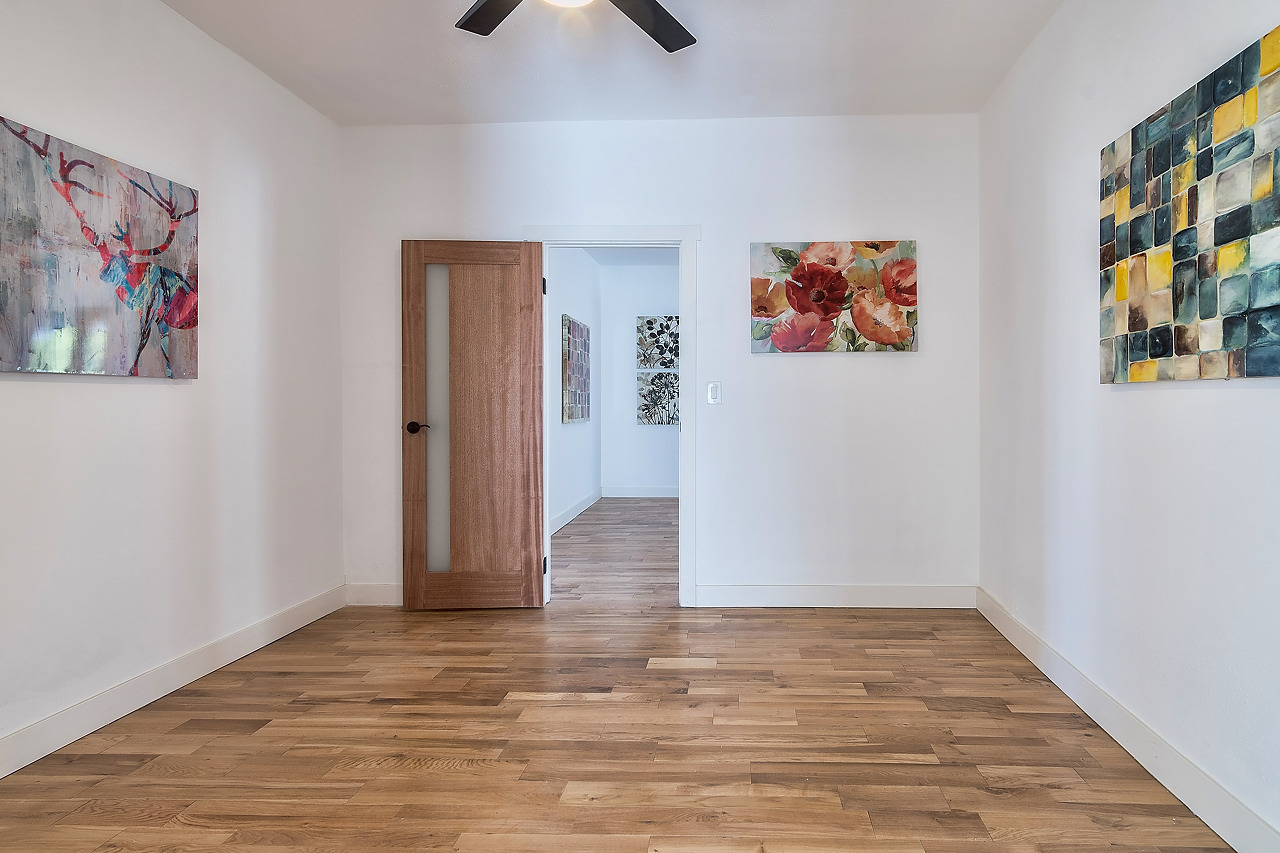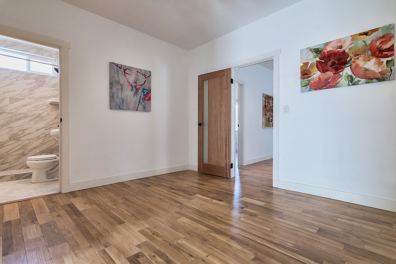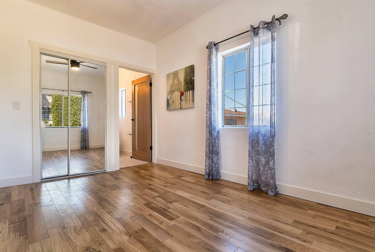 Beautiful 2 bedroom & 2 bathroom fully remodeled Boyle Heights home. Brand new hardwood floors throughout, new kitchen with granite countertops, stainless steel sink, stove, and fridge. Nice bedrooms with their own private bathrooms. New LED ceiling fans in each bedroom. Light and bright airy home with new Central AC and heating system. New designer wood and glass doors throughout the home. Stack washer and dryer is included with this home. Onsite parking and nice front yard are also included!