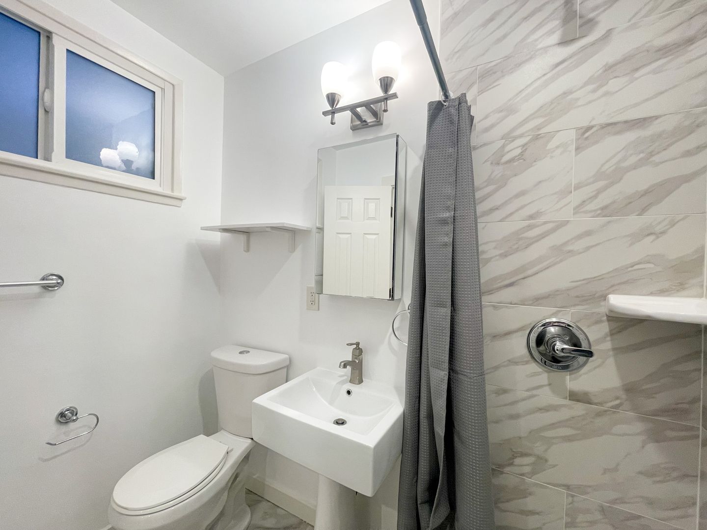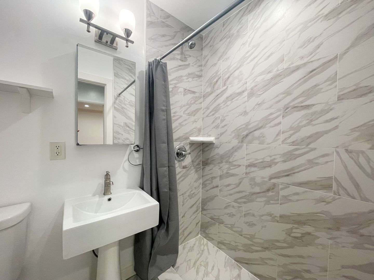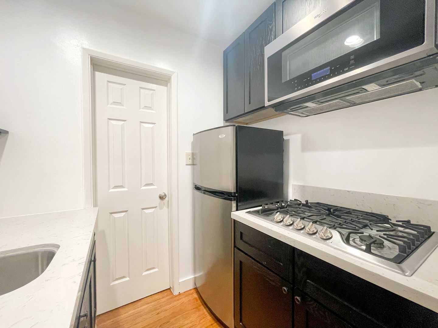 Hardwood floors, big windows, an abundance of closet space, LED lighting, galley kitchen with granite counters and a Carrera style tiled bathroom.