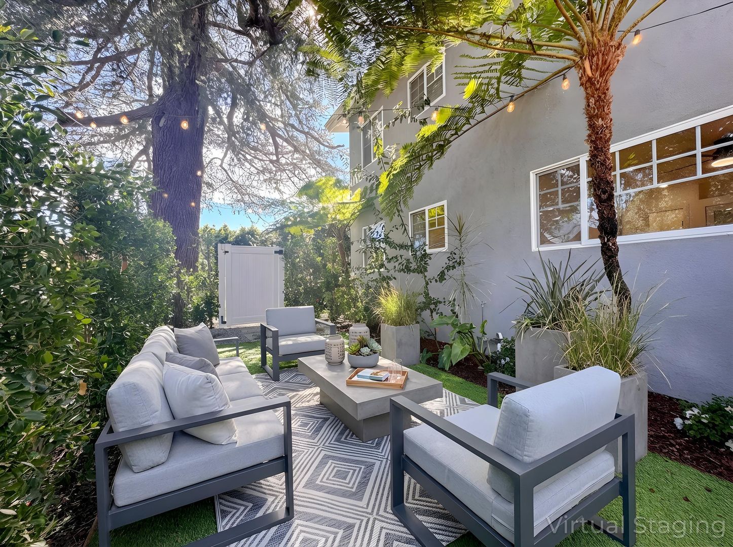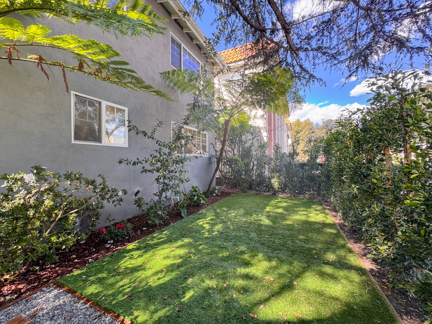 The unit also includes air conditioning, plenty of additional storage closets, and a private outdoor space enclosed by mature ficus trees — perfect for relaxing or entertaining.
